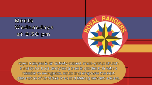 Royal Rangers is an activity-based, small-group church ministry for boys and young men in grades K-12 with a mission to evangelize, equip and empower the next generation of Christlike men and lifelong servant leaders.